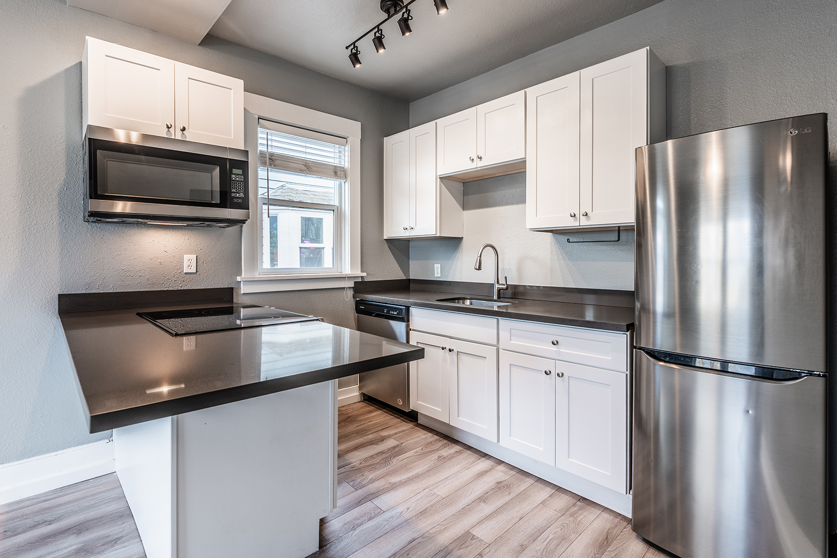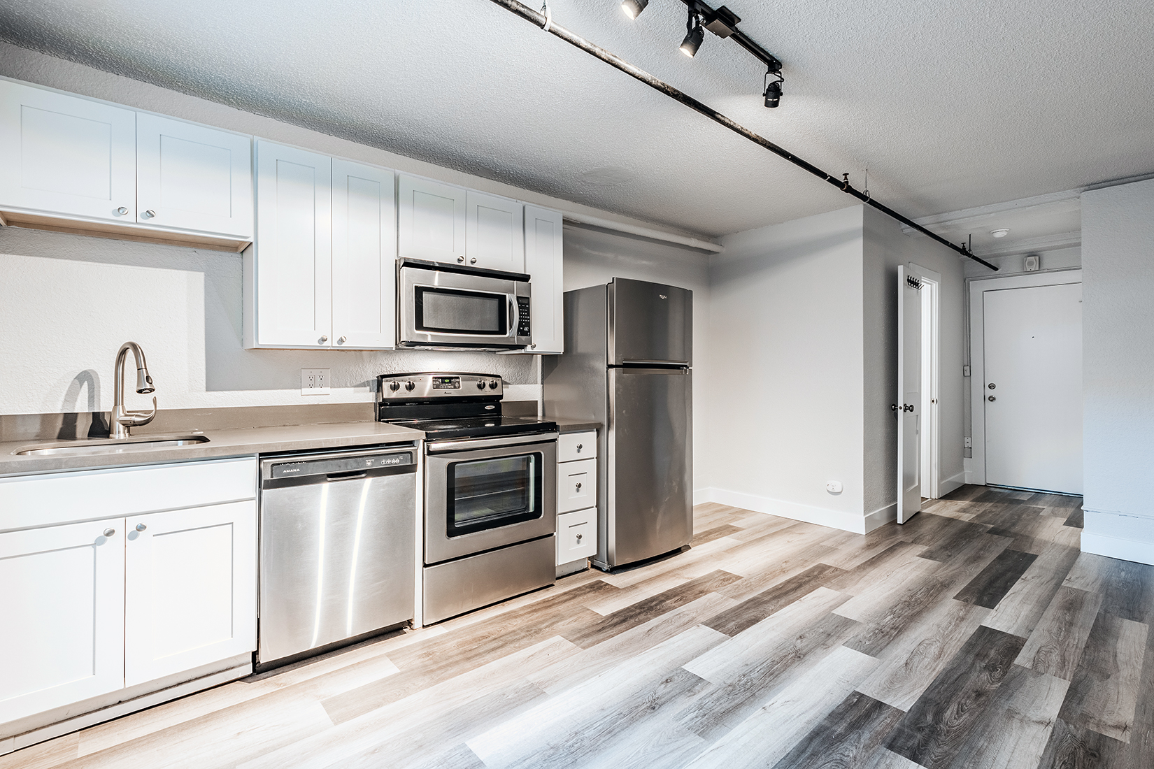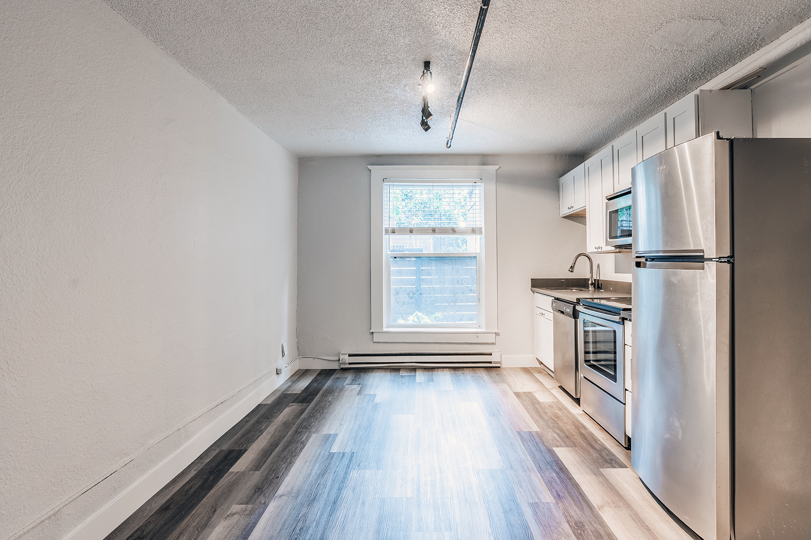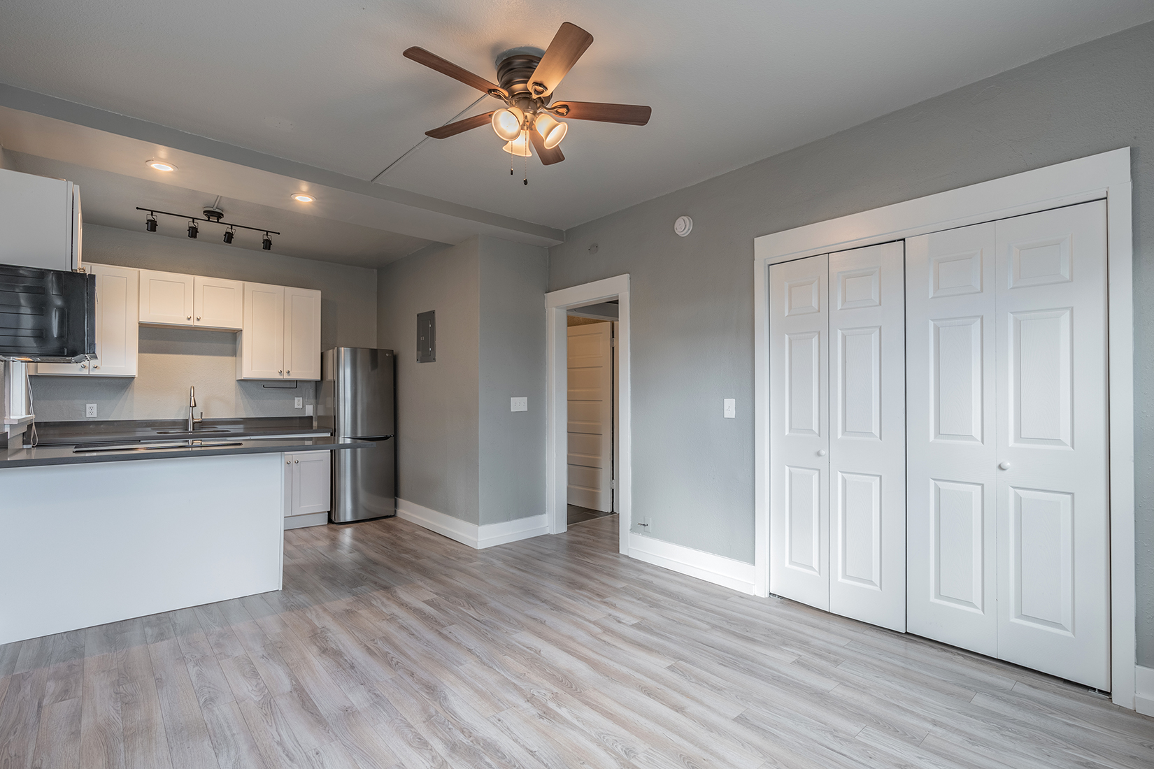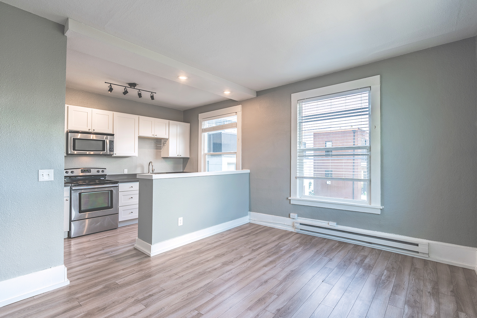 Our upscale micro-studio and one-bedroom apartments offer the perfect blend of historic character and modern comfort. Inside, you’ll love the classic features like high ceilings, classic wood-style and modern concrete flooring, as well as large windows that flood your home with natural light.