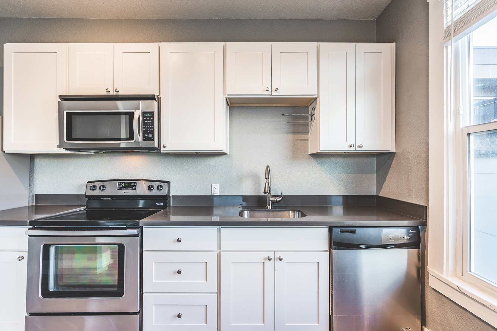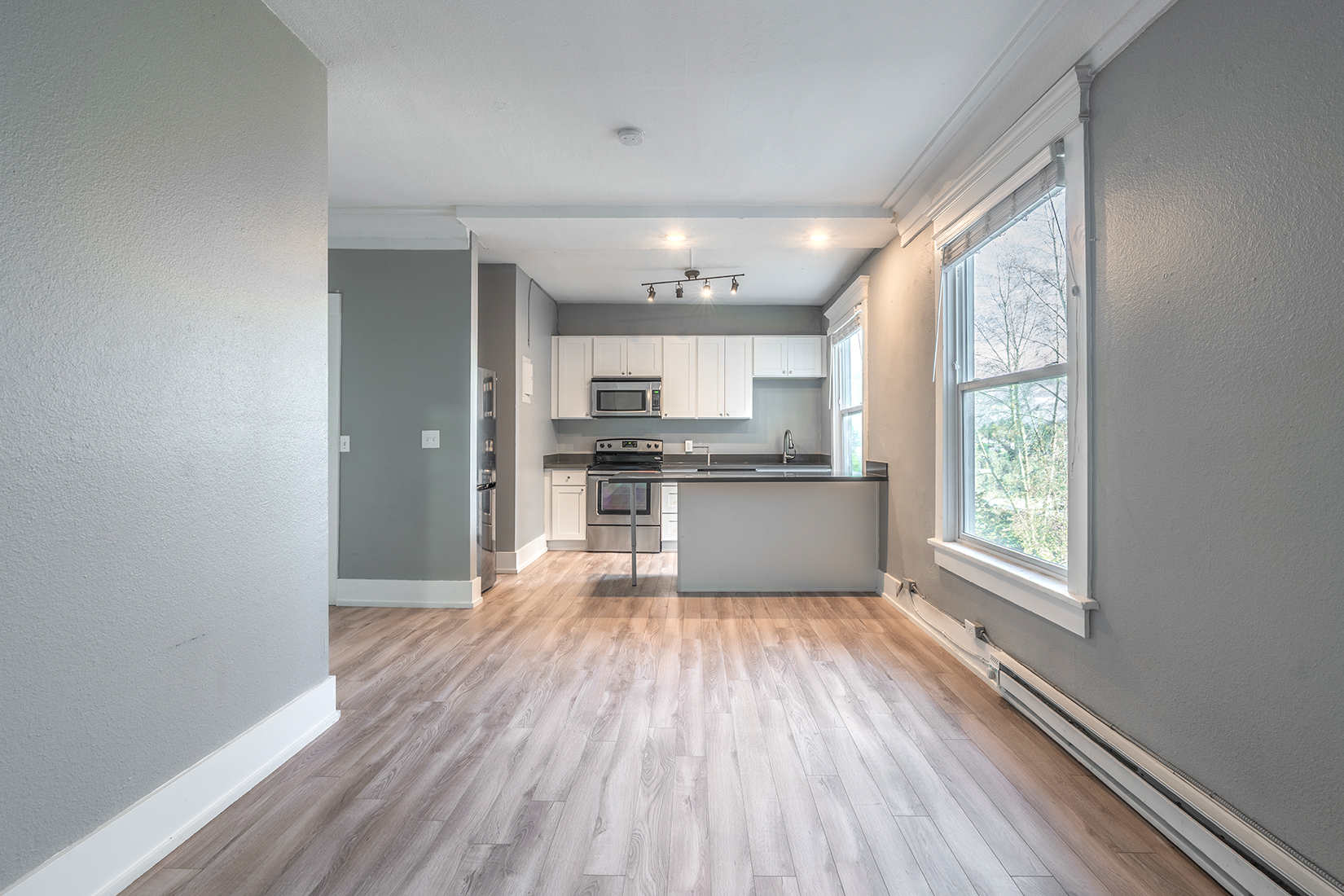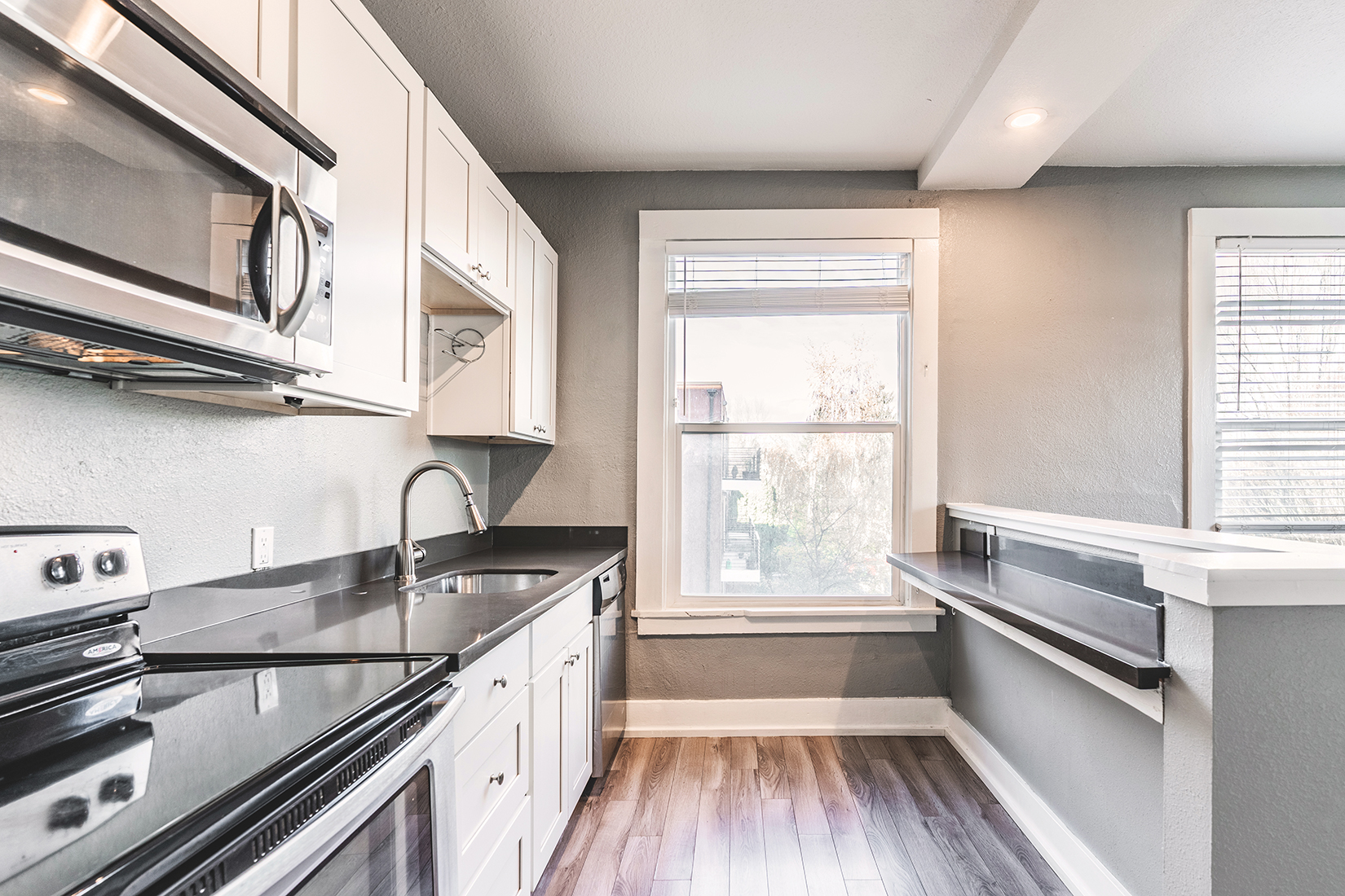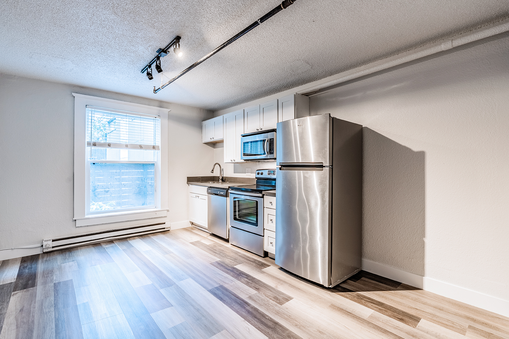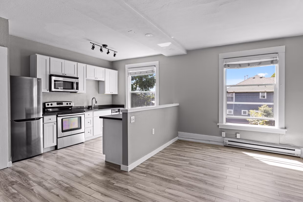 Our upscale micro-studio and one-bedroom apartments offer the perfect blend of historic character and modern comfort. Inside, you’ll love the classic features like high ceilings, classic wood-style and modern concrete flooring, as well as large windows that flood your home with natural light.