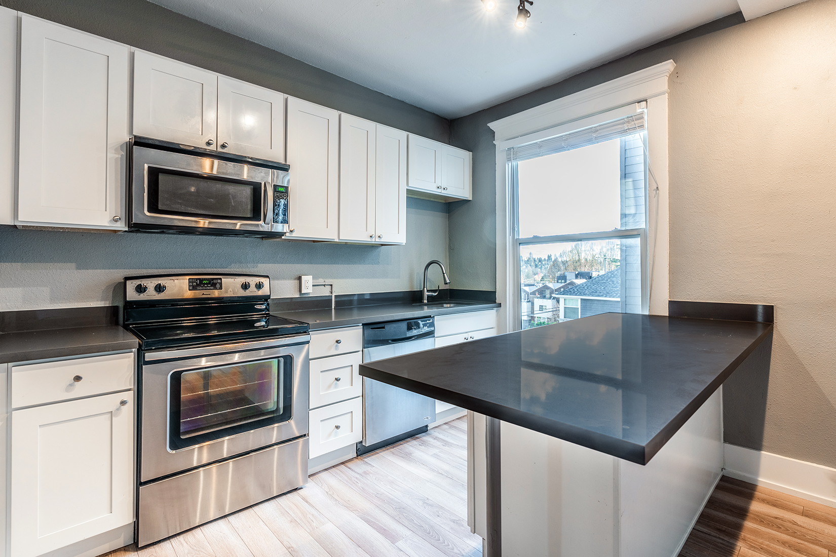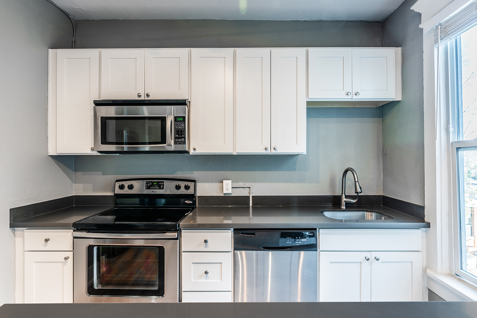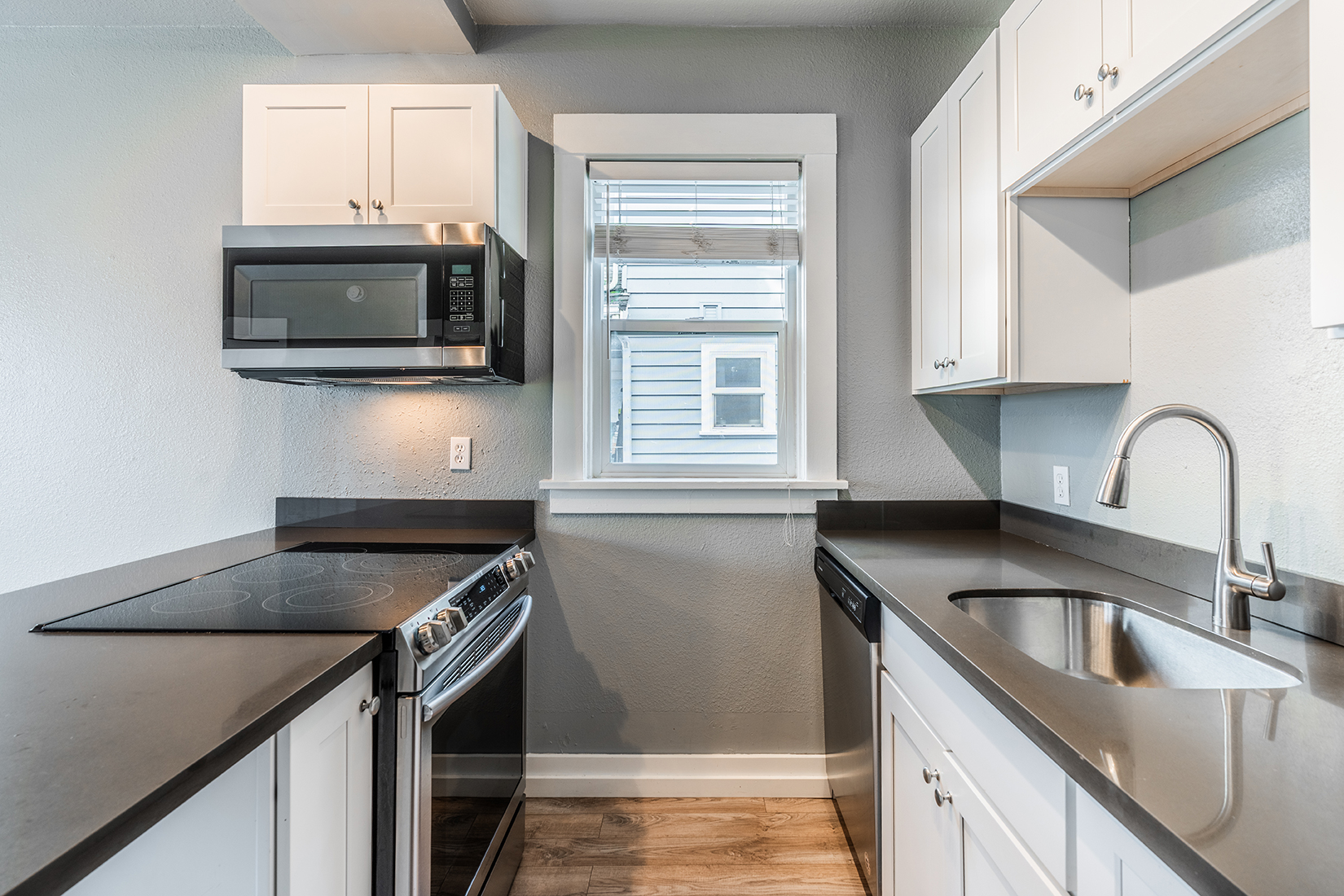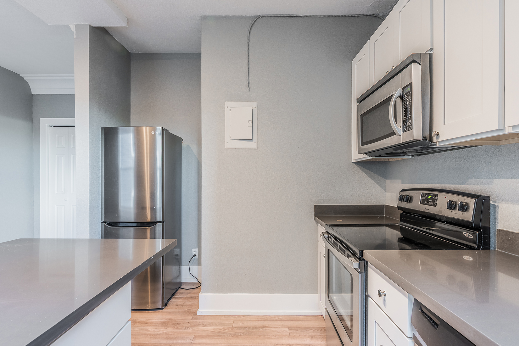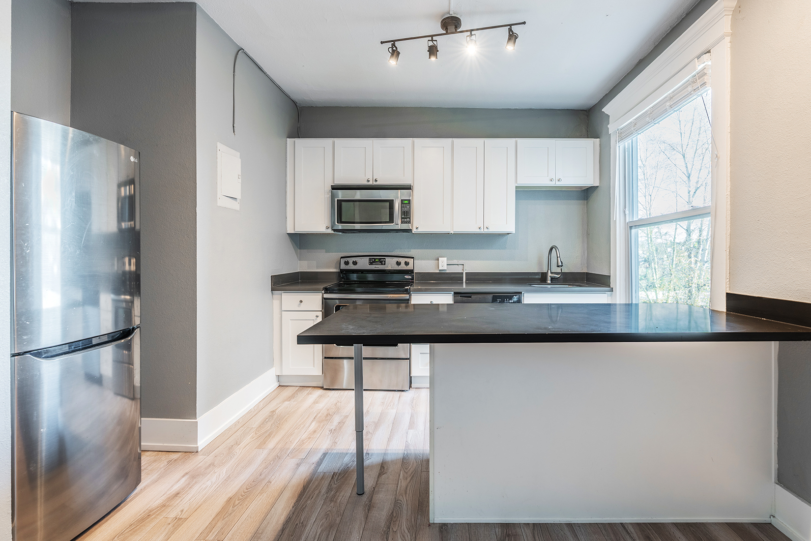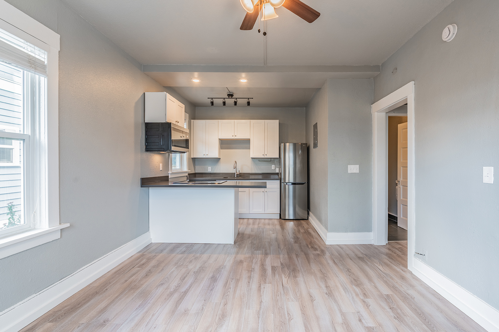 Our upscale micro-studio and one-bedroom apartments offer the perfect blend of historic character and modern comfort. Inside, you’ll love the classic features like high ceilings, classic wood-style and modern concrete flooring, as well as large windows that flood your home with natural light.