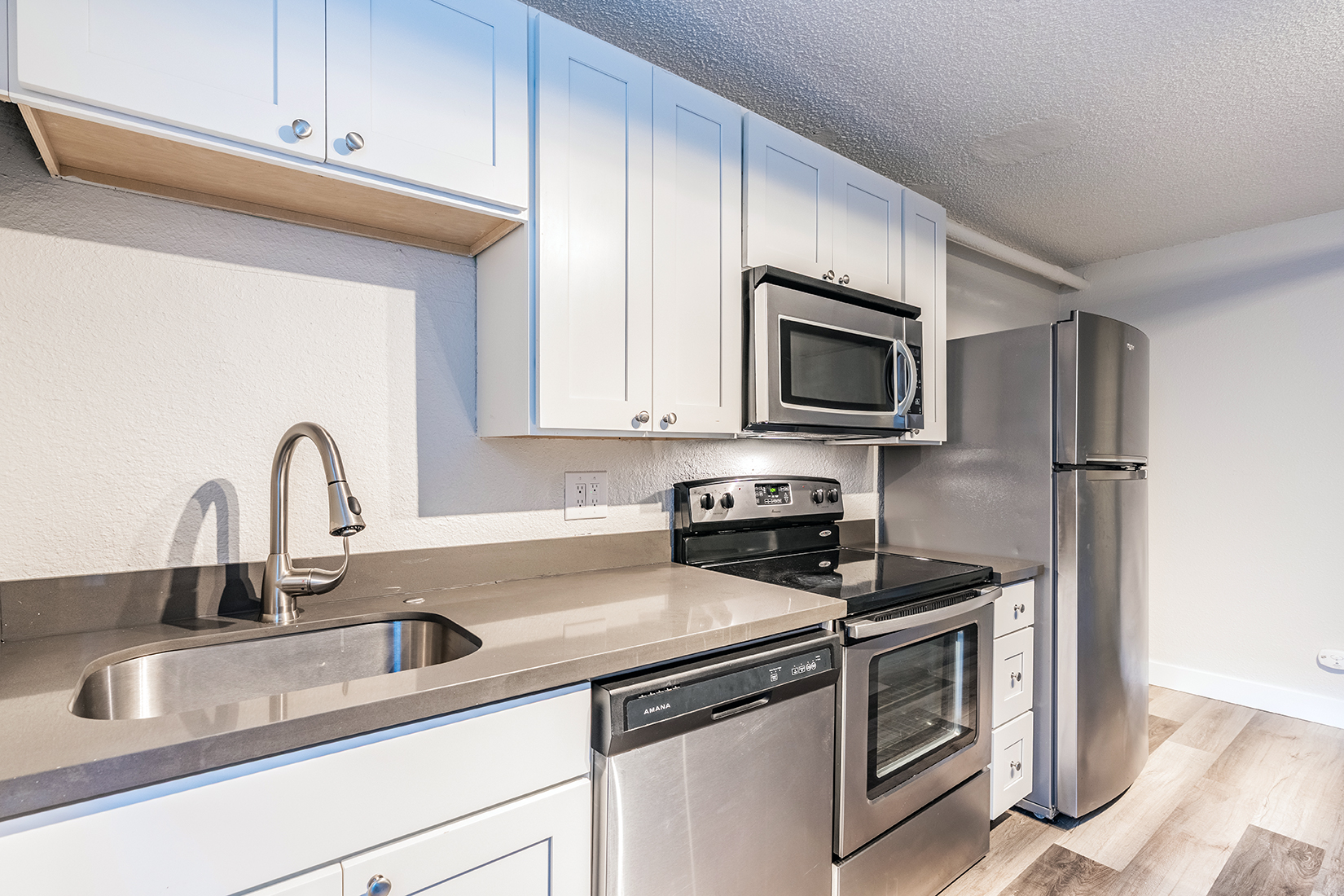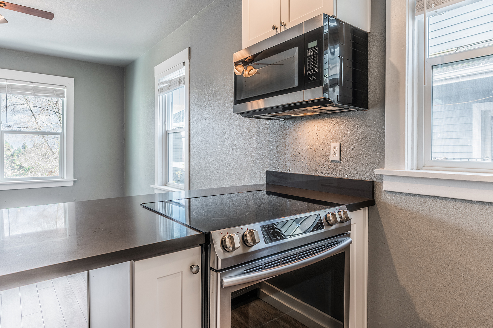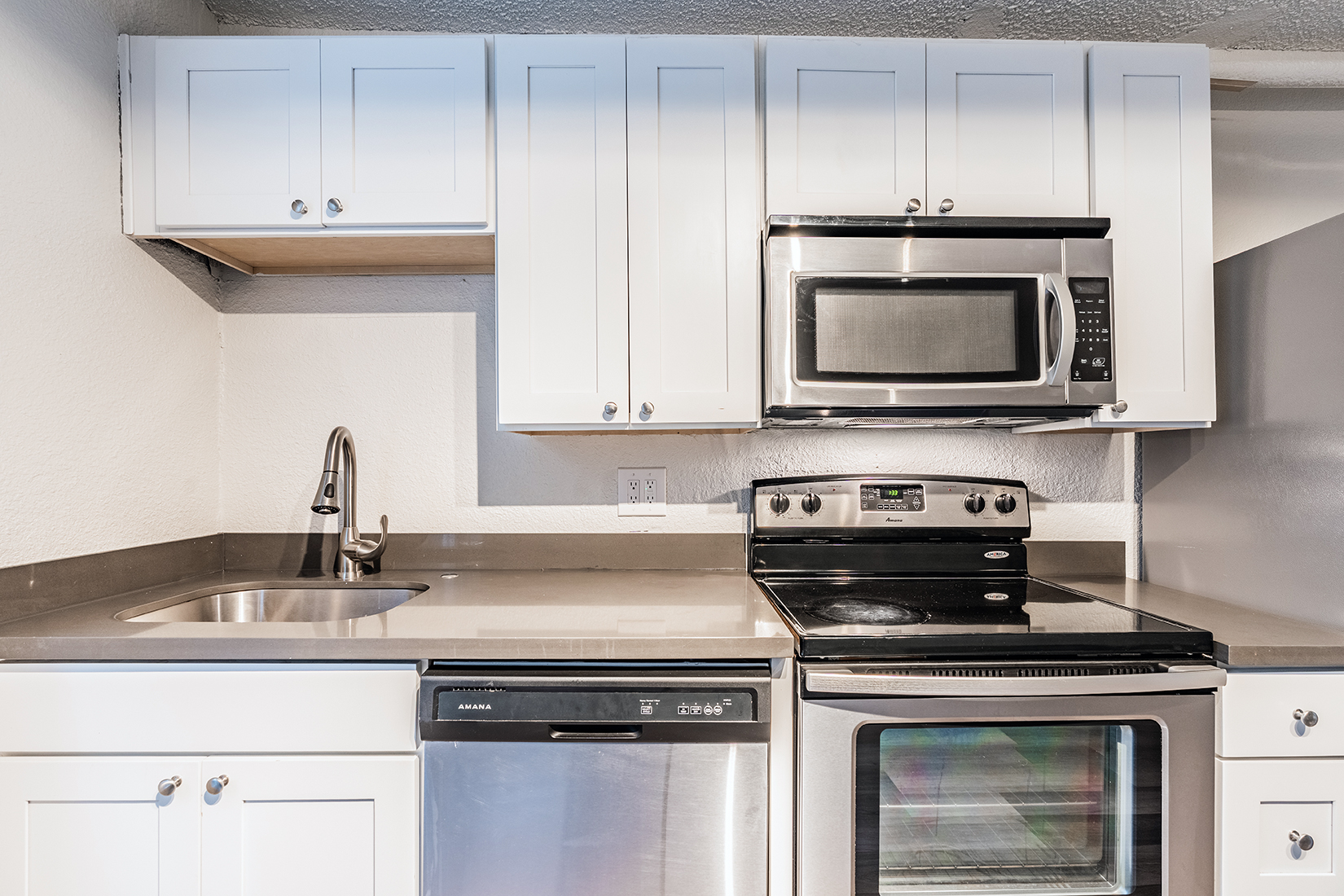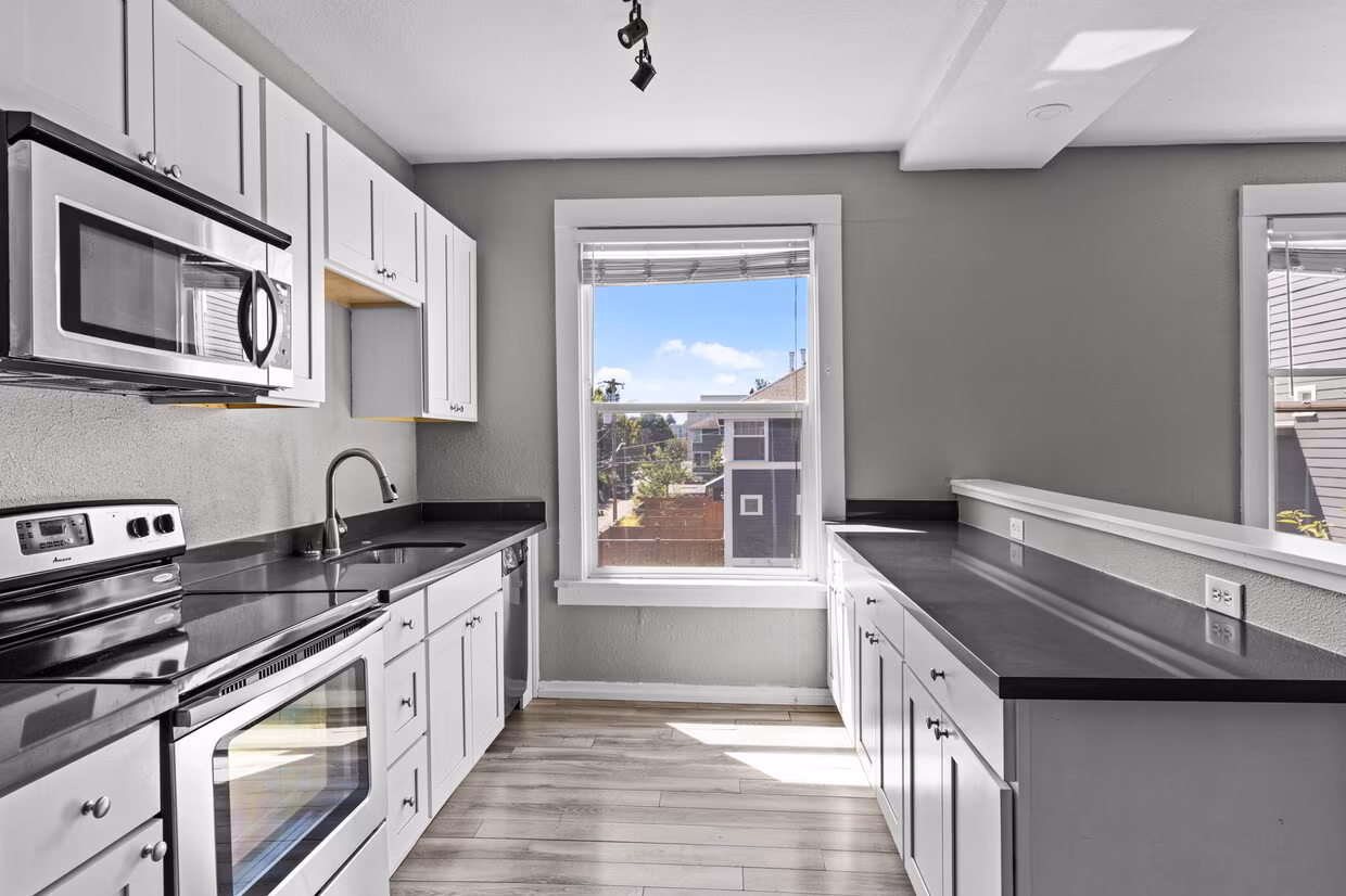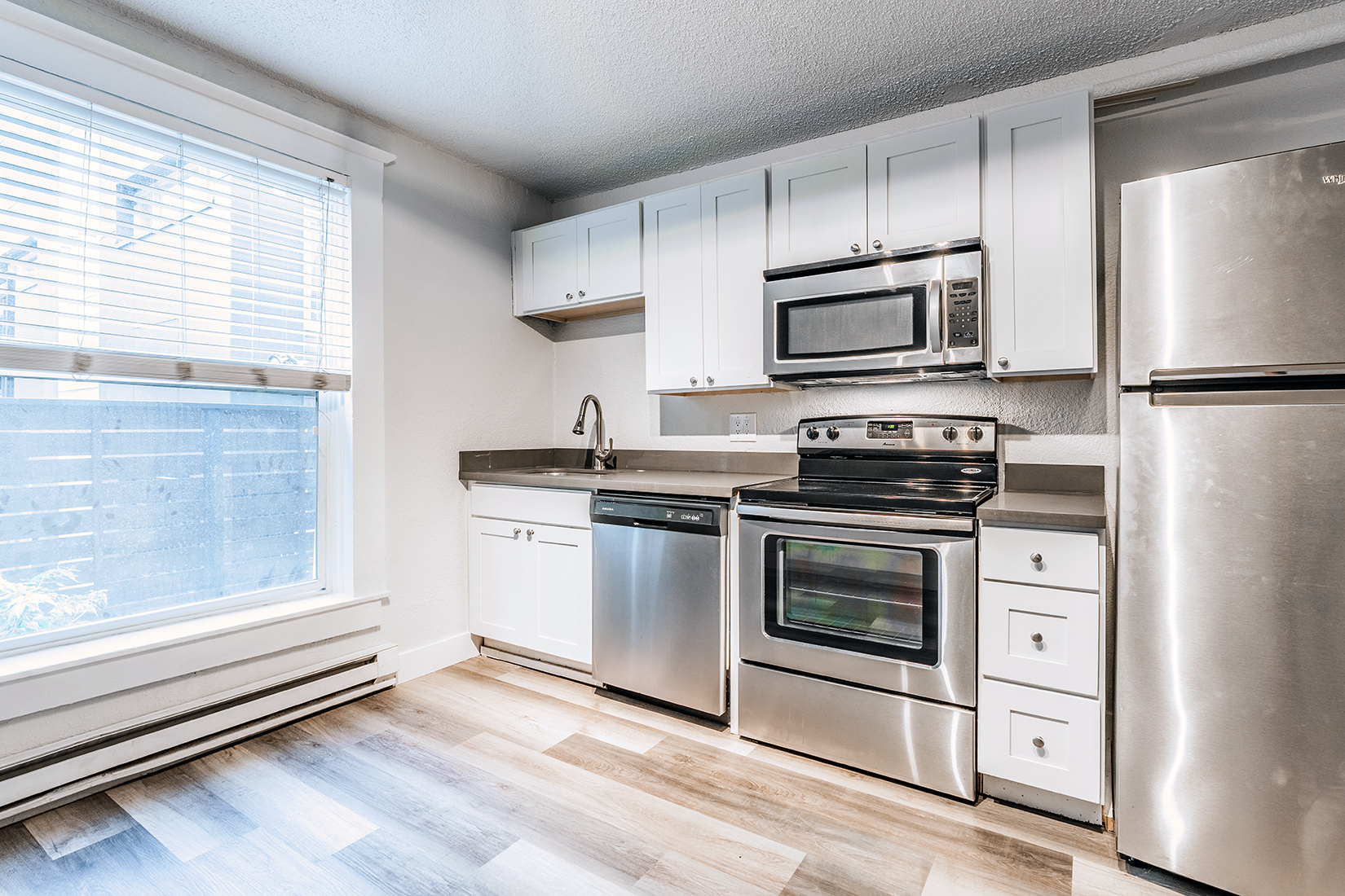 Our upscale micro-studio and one-bedroom apartments offer the perfect blend of historic character and modern comfort. Inside, you’ll love the classic features like high ceilings, classic wood-style and modern concrete flooring, as well as large windows that flood your home with natural light.